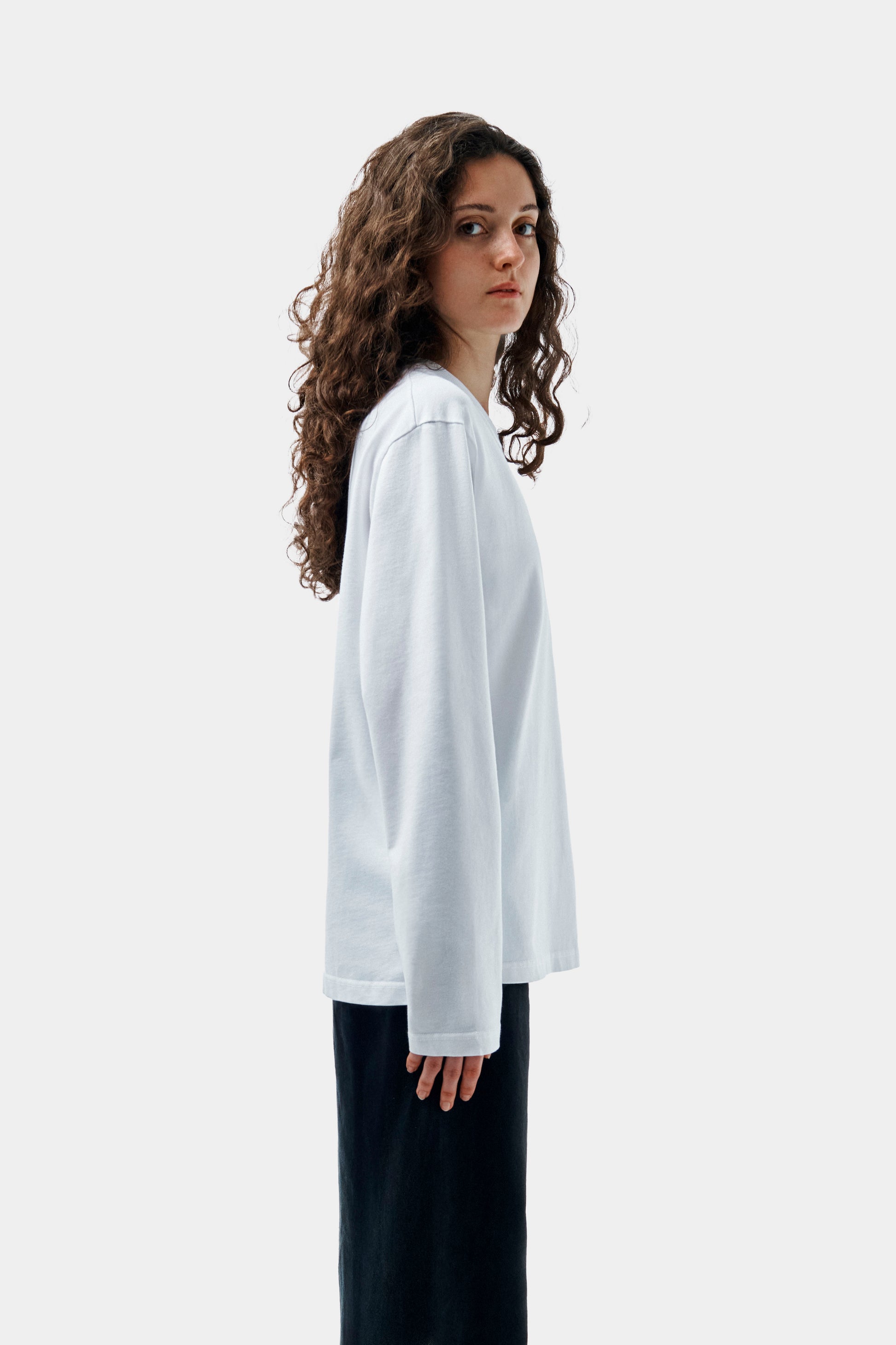 A classic fit Longsleeve with a 5cm side slit and regular sleeve. The fabric is knit with a specially developed two-ply, twisted yarn to achieve its heavy weight and unique density.